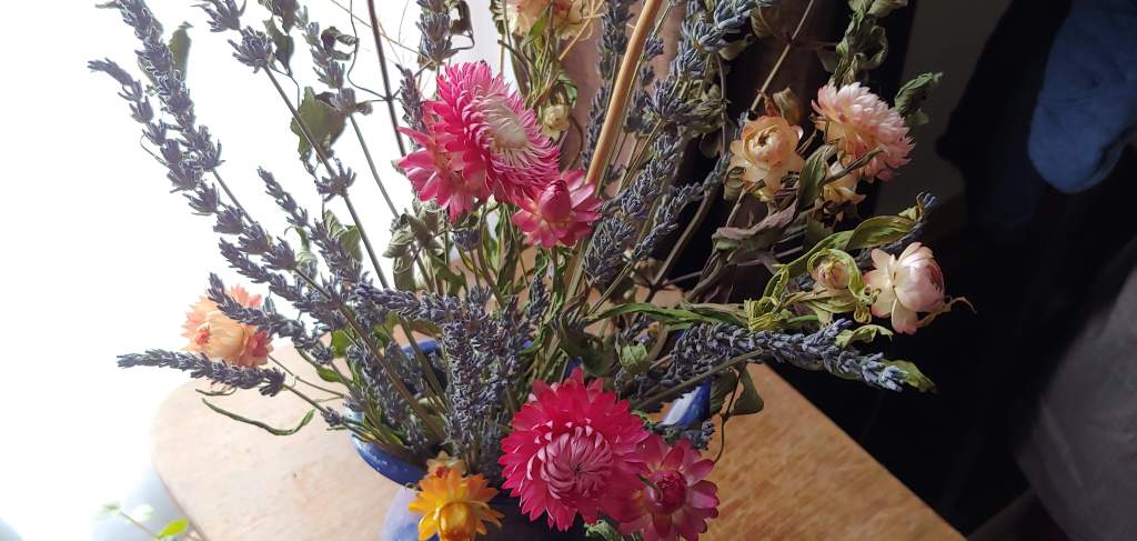 In addition, we are growing varieties that excel when dried. Dried arrangements and wreaths will help us extend the flower season to provide arrangements to our customers for winter holidays and Valentine’s Day celebrations.