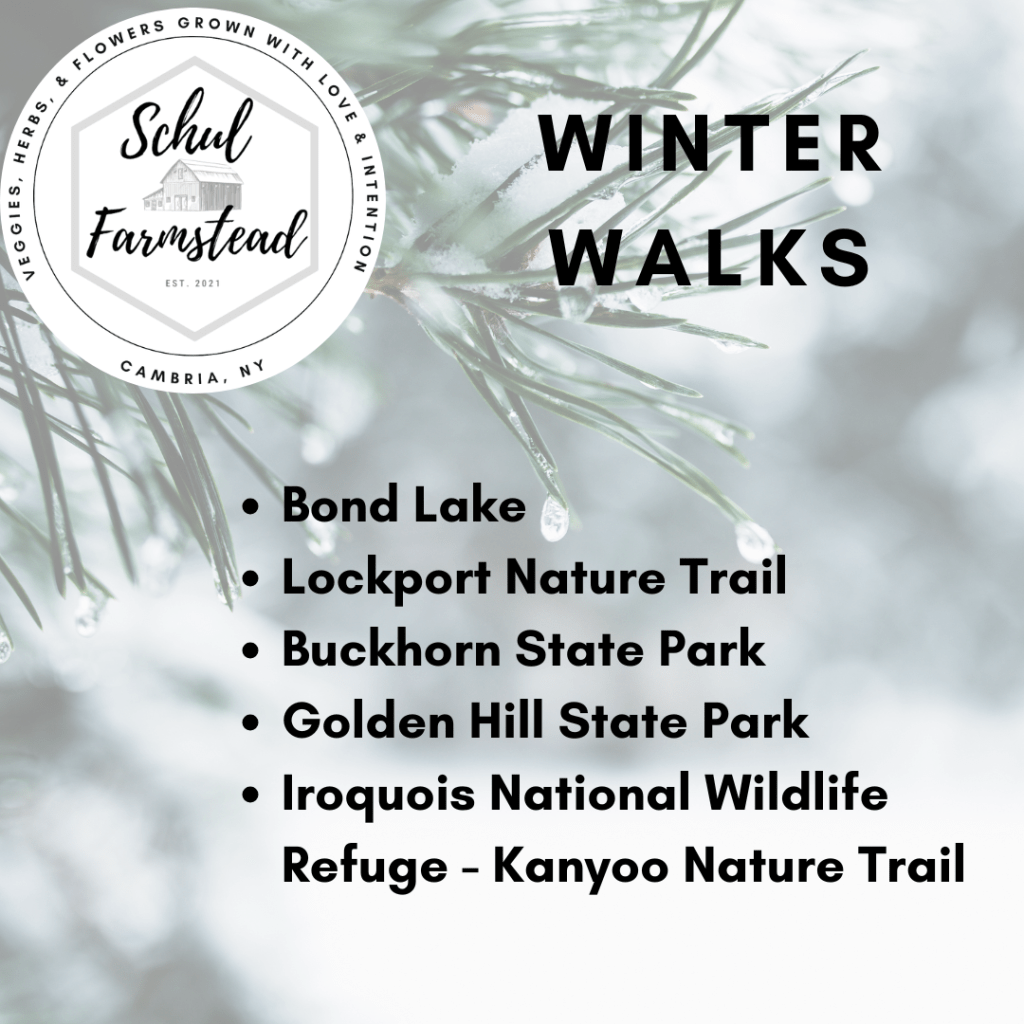 Some of my favorite winter walks include Bond Lake, Lockport Nature Trail, and of course, the woods surrounding the farm.