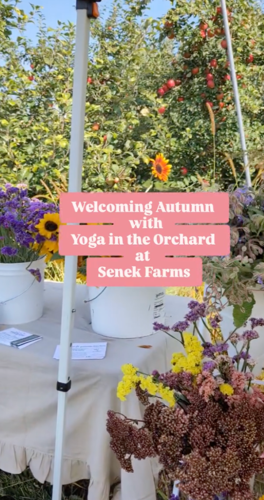 Tucked in the rows of the apple orchard on Senek Farms, Jess guided us in a flow to help us all embrace the new season.