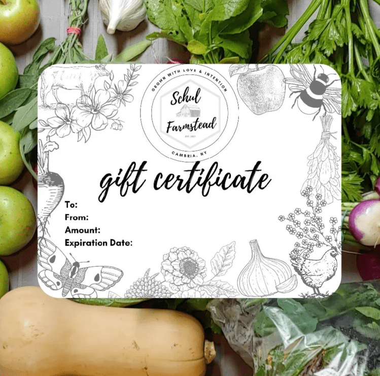 Need a gift immediately? Purchase a digital gift card to my farm and use it at the farmers market for fresh veggies, microgreens, or flower bouquets. Or use the gift card to purchase tickets to an upcoming workshop or garden seedlings in the spring.